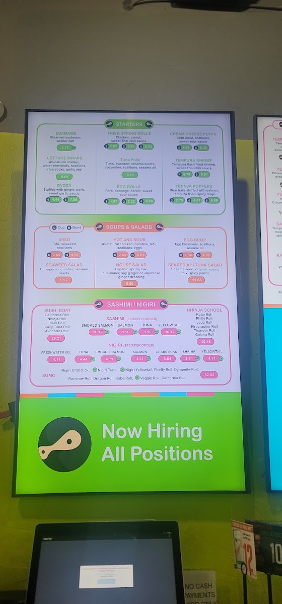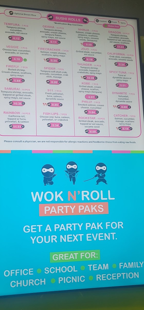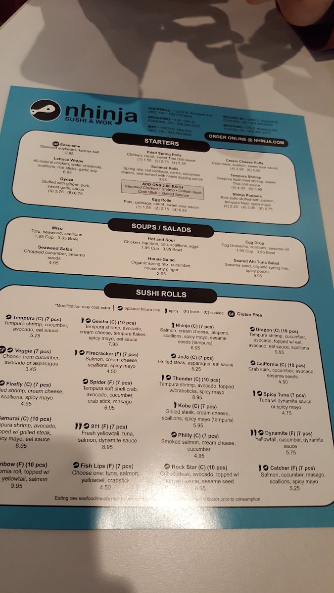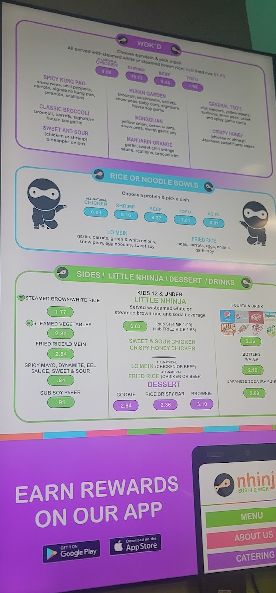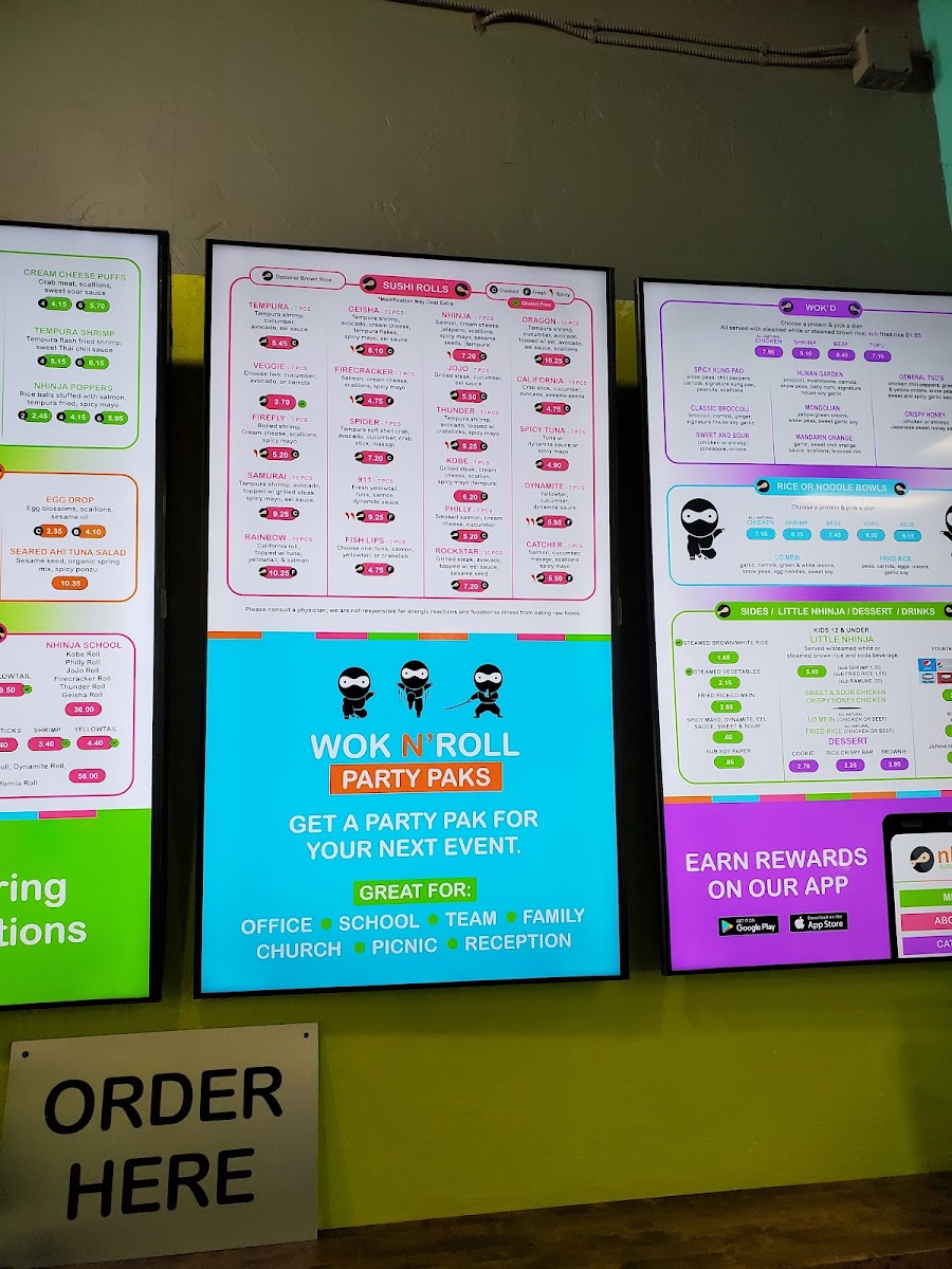 California Roll, Nhinja Roll, JoJo Roll, Spicy Tuna Roll, Avocado Roll